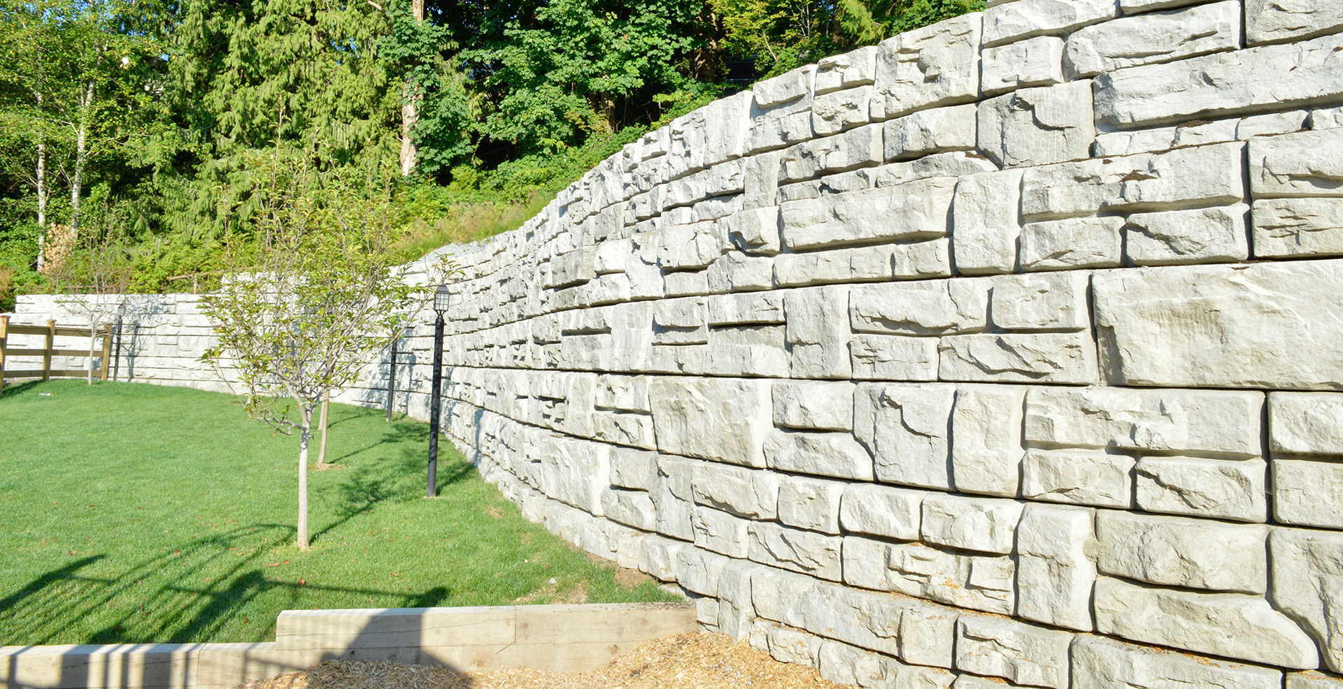 A Redi-Rock® gravity wall can be built in less space than a small block wall, and requires no geogrid reinforcement. This means that gravity walls are an ideal solution for projects that need to be built close to already existing structures.